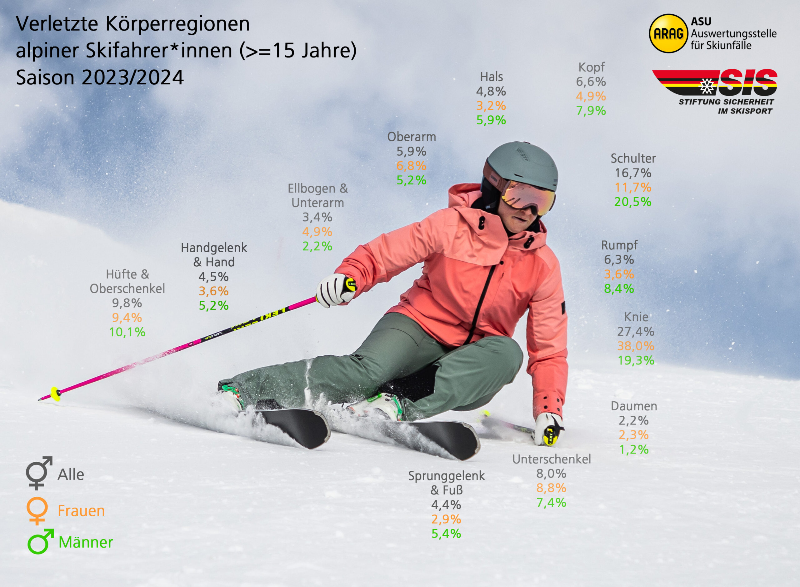 Die jährlich kostenlos erscheinende Unfallanalyse der Auswertungsstelle für Skiunfälle (ASU Ski) liefert hierfür die Datengrundlage und unterstützt Vereine, Verbände und Freizeitsportler*innen mit aktuellen Erkenntnissen zur Unfallprävention.
